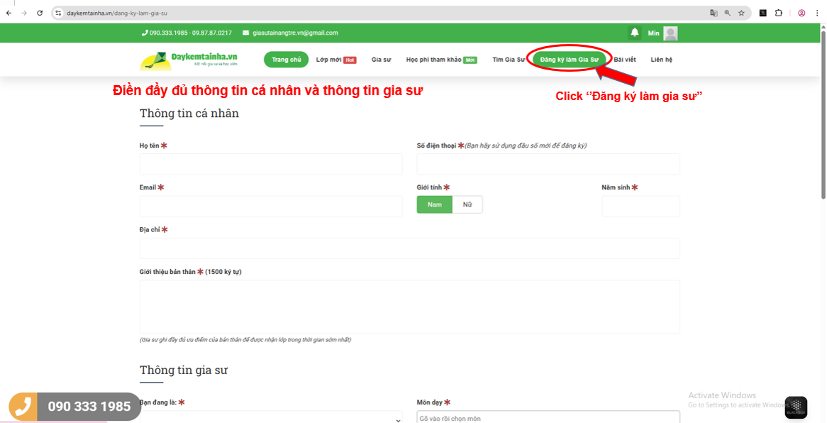 Đăng ký làm gia sư Daykemtainha.vn